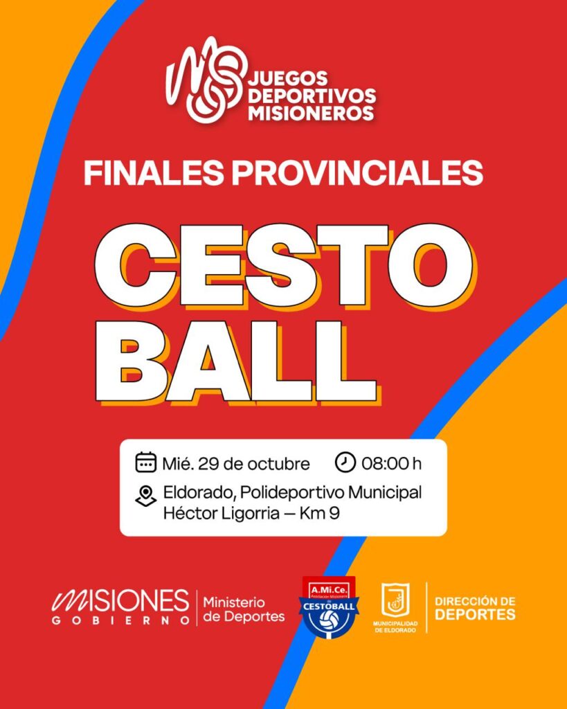La competencia se desarrollará este miércoles 29 de octubre a partir de las 8 de la mañana, el evento organizado por el Ministerio de Deportes recibe el apoyo del gobierno de la provincia, la Municipalidad de Eldorado desde la Dirección de Deportes y la Asociación Misionera de Cestoball.