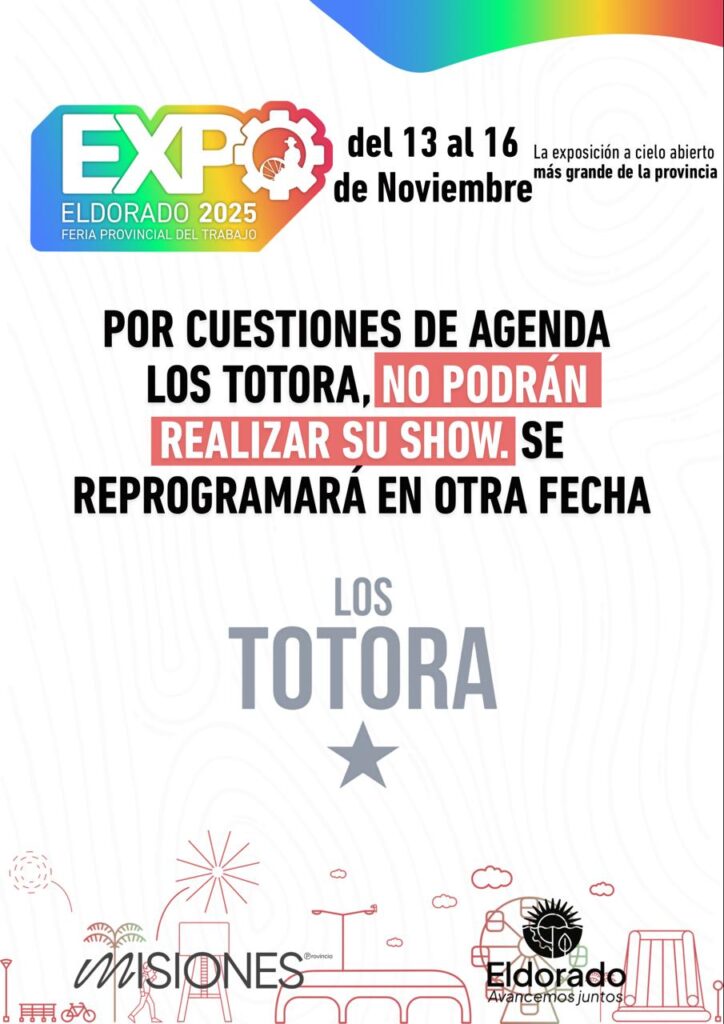Expo Eldorado: Reprograman el show de Los Totora