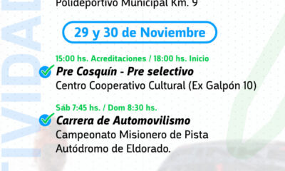El que primero inicia la actividad es el Campeonato Misionero de Pista que hoy arranca con las pruebas libres. En tanto que el sábado, desde las 7,45, se hará la clasificación y el domingo se correrán las finales. Ese mismo día se realizará la inauguración formal del nuevo circuito del AutoMoto Club “Enrique Seeber”.