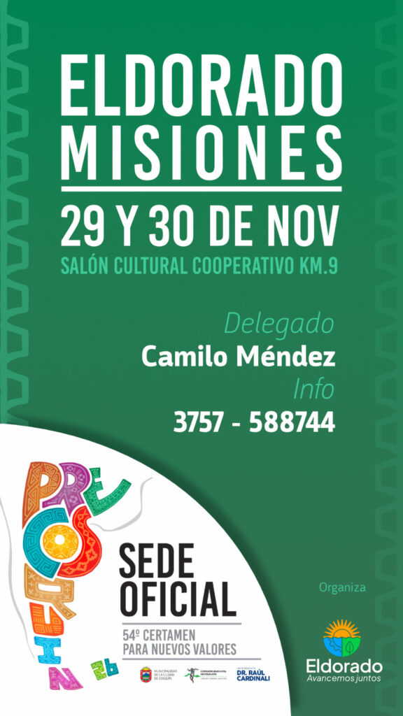 La Dirección de Cultura y Educación invita a todos los vecinos a ser parte de un acontecimiento histórico para nuestra ciudad. Por primera vez, los dos festivales folclóricos más importantes de la Argentina tendrán en Eldorado su instancia pre selectiva: