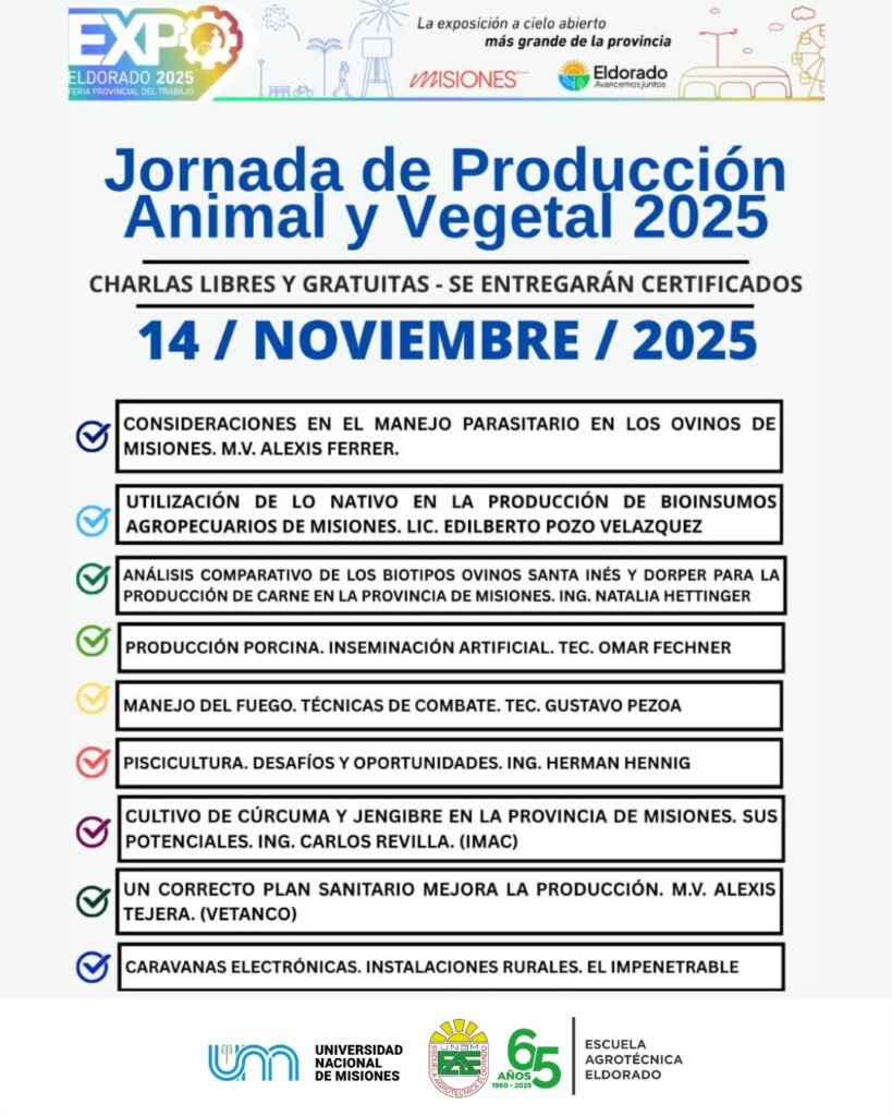 Una nueva edición de la Jornada de Producción Animal y Vegetal 2025 está siendo organizada para desarrollarse en el marco de la Expo Eldorado 2025, que se concretará la próxima semana.