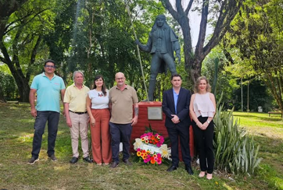 Este domingo, la Viceintendenta de Eldorado, Dra. Lorena Cardozo, junto al Secretario de Hacienda, CP. Marcelo Mikulán, la Secretaria de Ambiente, Ing. Valeria Schendelbek y representantes del barrio Guacurarí, realizaron la entrega de una ofrenda floral en honor a Andrés Guacurarí.