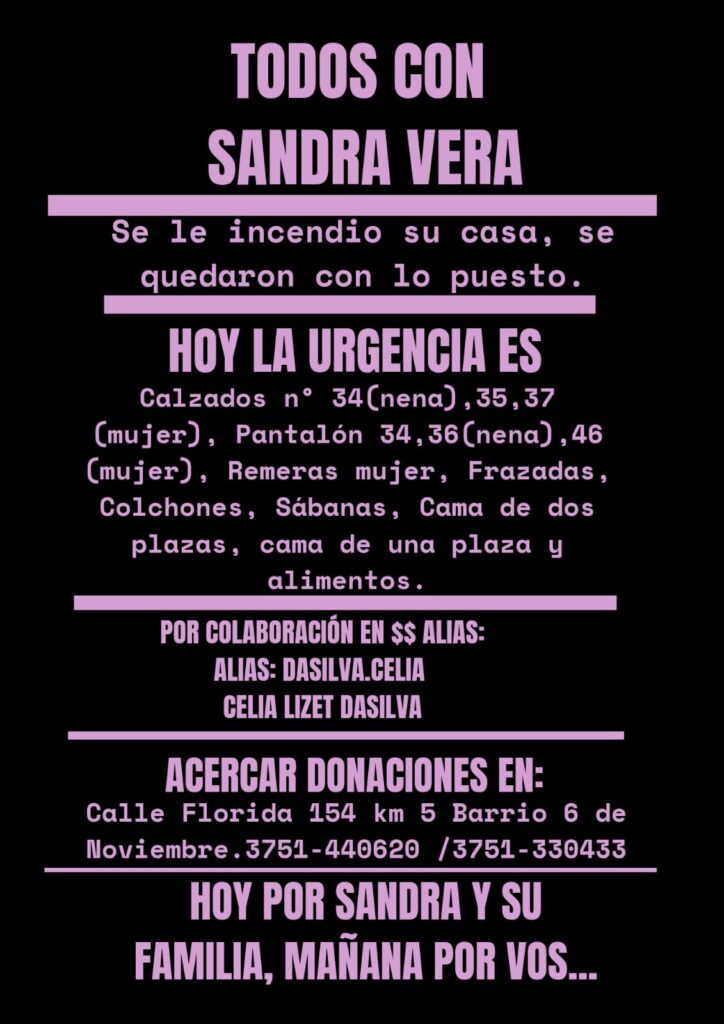 Colecta Solidaria para la familia Vera – Da Silva tras el incendio que los dejó con lo puesto