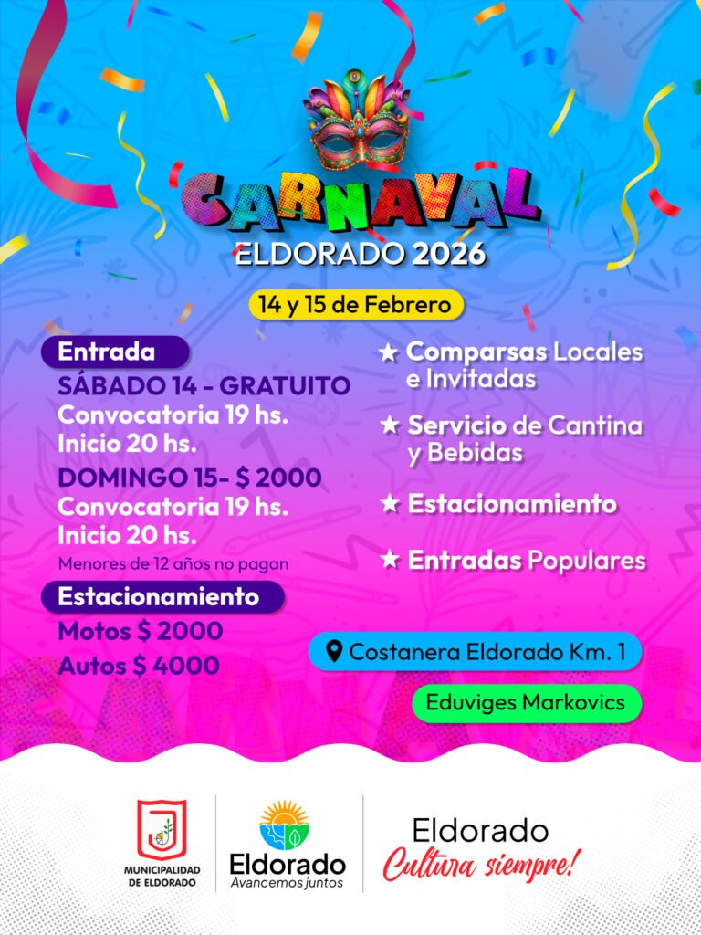 La Municipalidad de Eldorado, a través de la Dirección de Cultura y Educación, confirmó el avance en la organización de los Carnavales Eldoradenses 2026. El evento, que representa uno de los pilares culturales de la ciudad, es el resultado de un trabajo articulado entre las áreas de Obras Públicas, Protección Civil y Acción Social para garantizar la seguridad y el despliegue en la avenida principal.