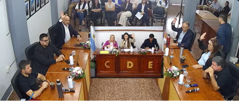 Los votos afirmativos fueron de los renovadores Jorge Doldán, Leonardo Frey, María Cristina Bandera y Ornella Beccaluva (Presidente). Mientras que los votos negativos fueron por parte de los concejales de La Libertad Avanza, Esteban Nöller y Fernando Montiel, y del renovador Alejandro Arenhardt.