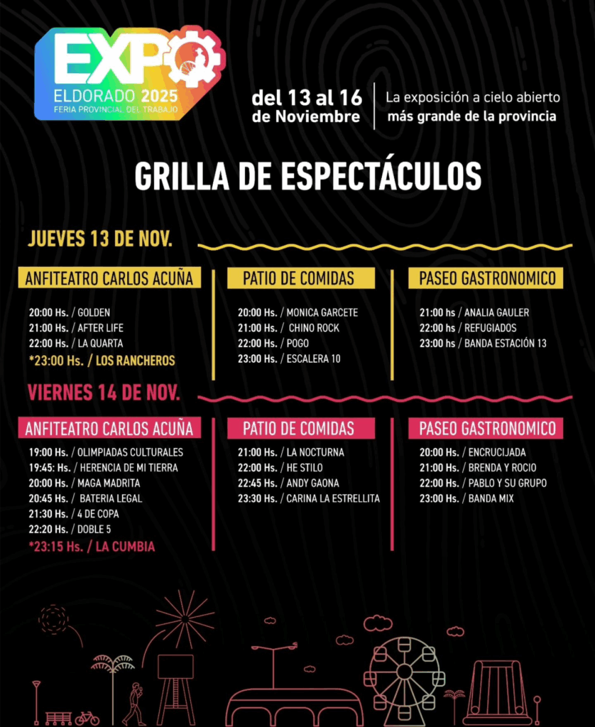La Expo Eldorado 2025 ya tiene armada la grilla de espectáculos