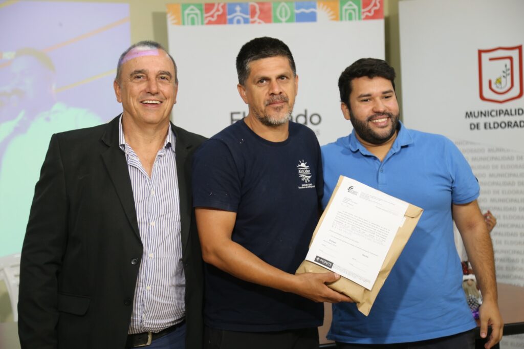 El Intendente de la ciudad, Dr. Rodrigo Durán, recibió a los representantes de la Asociación Civil Scouts de Argentina – Distrito Eldorado, integrantes de las instituciones beneficiadas y organizadores de la Expo Eldorado para hacer esta entrega.