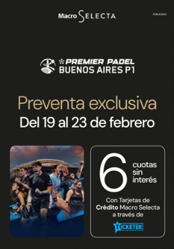 Banco Macro presenta la quinta edición del Buenos Aires Premier Padel P1, que este año se realizará del 11 al 17 de mayo en el Arena Parque Roca, en la Ciudad de Buenos Aires.