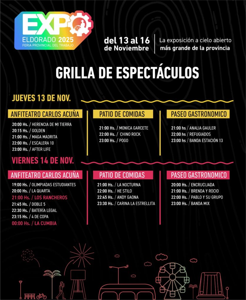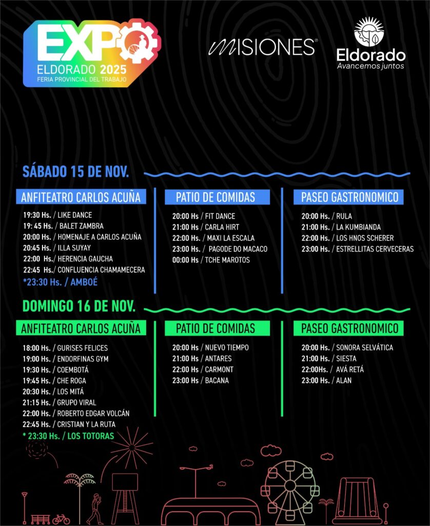 Acá te dejamos el cronograma del 13 al 16 de noviembre en la Costanera de Eldorado!