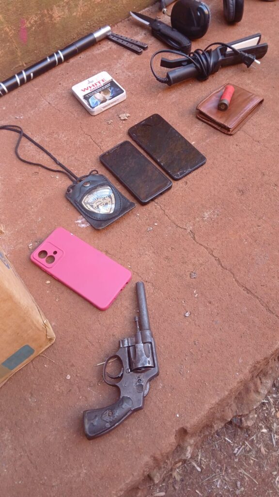 En el segundo domicilio, en la manzana 14, se produjo el hallazgo más significativo: electrodomésticos varios, dos motoguadañas, una bicicleta, un horno eléctrico, ventiladores, teléfonos celulares, una manopla y dos revólveres. En ese punto fueron detenidos dos hombres de 50 años, presuntamente vinculados a la logística y reducción del botín.