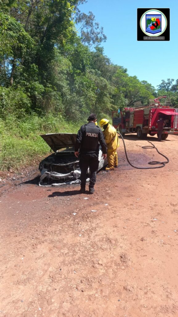 En horas del mediodía de este lunes, personal policial de la Unidad Regional III de Eldorado intervino ante el incendio de un automóvil Peugeot 504 ocurrido sobre la avenida 9 de Julio Km 1. El conductor del rodado, debió ser trasladado en ambulancia hasta el Hospital Samic.