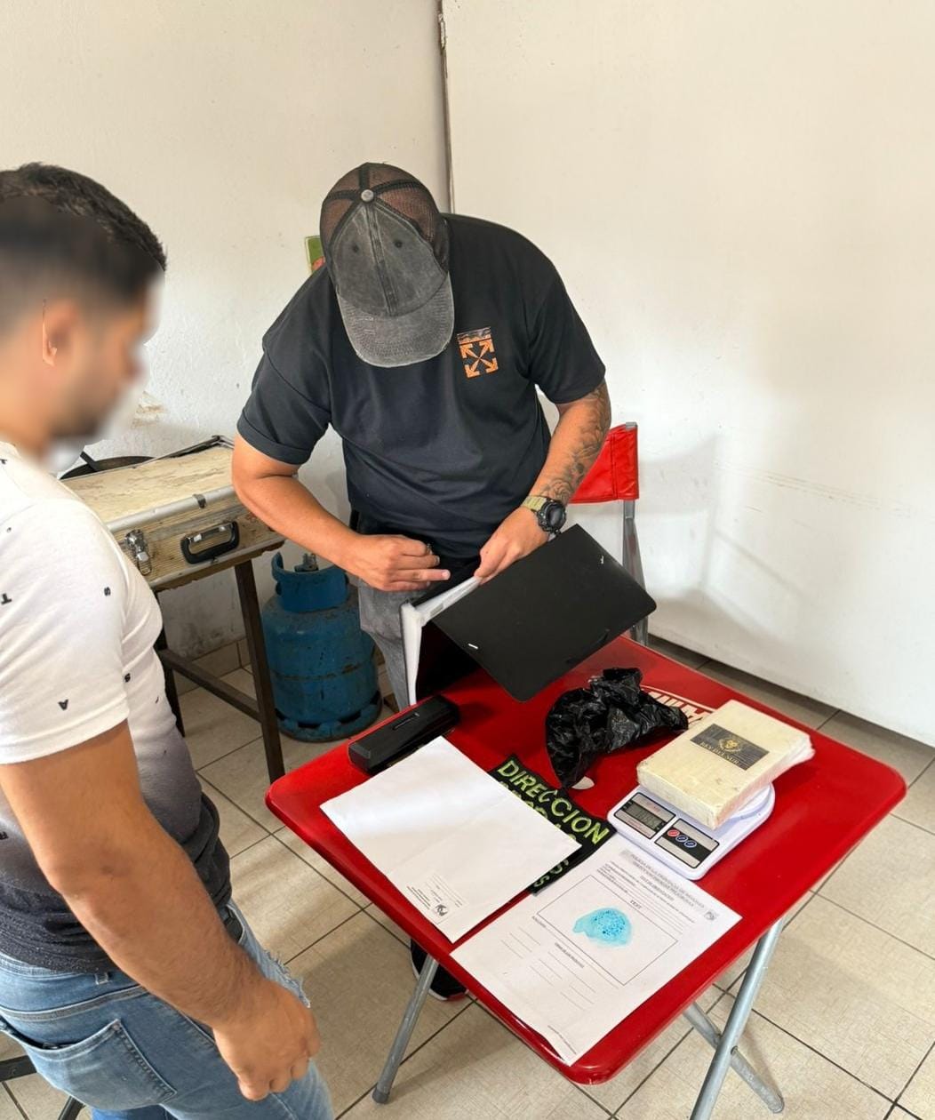 El operativo se llevó a cabo a las 02:50, cuando los uniformados observaron a dos masculinos frente a una vivienda, quienes se dieron a la fuga pero fueron rápidamente alcanzados e identificados. Uno de ellos portaba un cuchillo y una riñonera con dosis de una sustancia cerosa amarronada, además de un tubo plástico oculto entre sus partes íntimas, dando un total de 11 dosis, que arrojaron positivo para cocaína con un pesaje de 4 gramos.