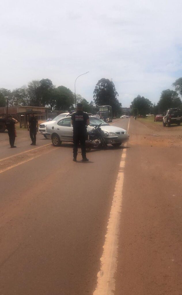 Un motociclista de 28 años resultó con lesiones graves luego de protagonizar un siniestro vial en el kilómetro 975 de la Ruta Nacional 14, a la altura de San Vicente. El hecho ocurrió cerca del mediodía de este viernes, donde por causas que se investigan, se produjo una colisión entre una motocicleta Honda Titan 150 cc., conducida por Sergio Ariel B. y un automóvil Renault Mégane al mando de Liliana Ester S., quien resultó ilesa.