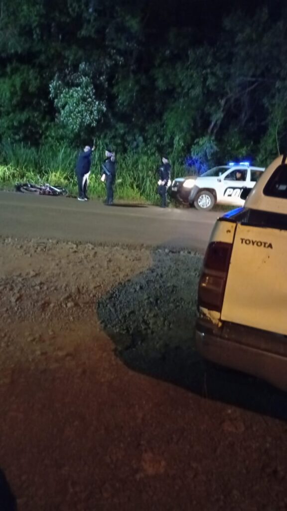 Un siniestro vial se registró en la noche del sábado sobre las calles Quito y Ucrania de Jardín América, donde una motocicleta Mondial 110 cc y una camioneta Ford F-100 colisionaron, resultando lesionado el conductor del rodado menor.