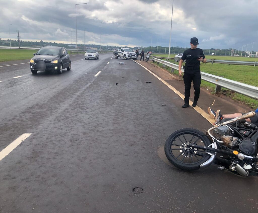 En la tarde de este viernes, cerca de las 15:50, se produjo un siniestro vial en la colectora del Acceso Sur. Por causas que se investigan, se produjo la colisión entre una motocicleta Patagonia Eagle, conducida por Erik Néstor F. (26), y un automóvil Toyota Corolla, al mando de José L. (95).