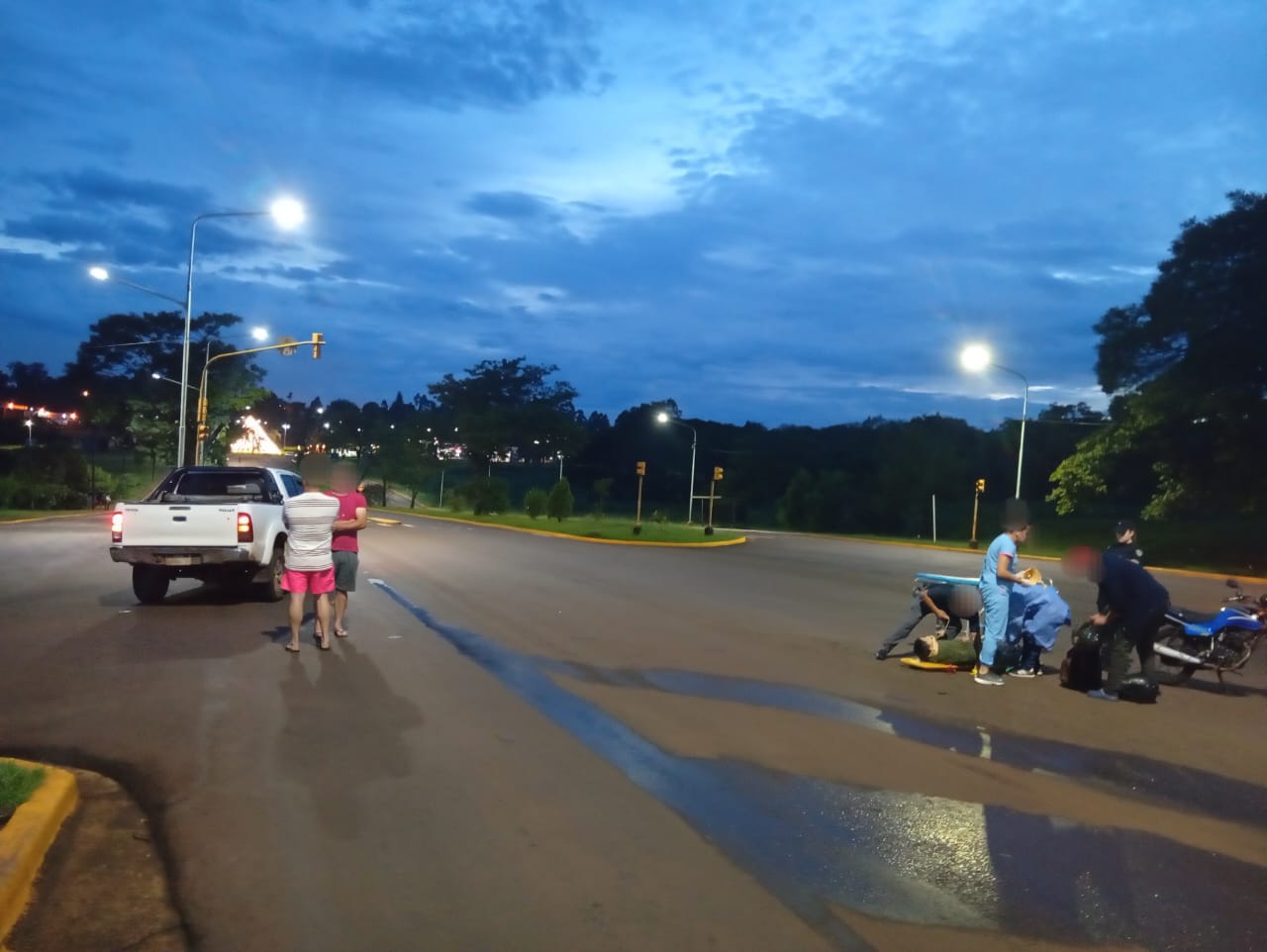 El siniestro involucró a una motocicleta Yamaha Crypton 110 cc, conducida por un hombre de 27 años, domiciliado en la zona de Terciados Paraíso, quien por causas que se tratan de establecer embistió a una joven de 19 años y a un hombre de 44, ambos domiciliados en la misma localidad.