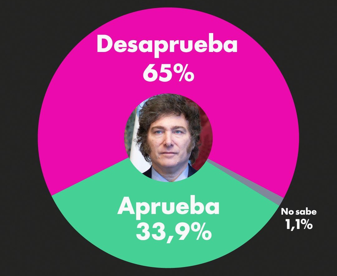 Un relevamiento difundido este miércoles muestra que la desaprobación de la gestión de Javier Milei trepó al 65%, marcando un crecimiento sostenido del descontento social.