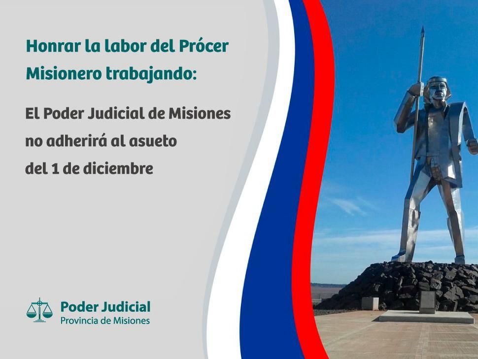 Honrar la labor del Prócer Misionero trabajando: El Poder Judicial de Misiones no adherirá al asueto del 1 de diciembre