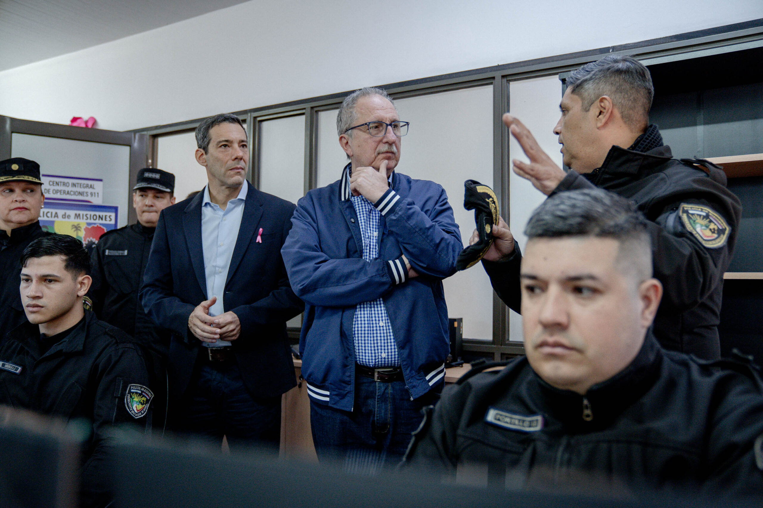 Acompañado por el ministro de Gobierno, Marcelo Pérez; el jefe de la Policía de Misiones, Sandro Martínez; y la inspectora a cargo del Nodo, Susana De Olivera, junto a otros integrantes de las áreas que operan en este espacio, Passalacqua observó el funcionamiento del sistema de videovigilancia articulado con el 911, dialogó con los equipos técnicos de la Policía Científica y del Cuartel de Bomberos, y visitó el consultorio médico donde se brinda atención clínica, pediátrica, psicológica y nutricional al personal policial.