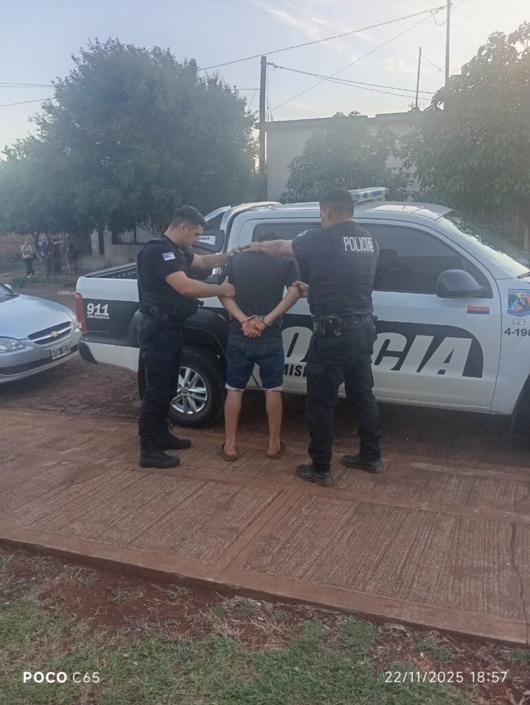 Al ingresar al barrio Aeroclub de Campo Grande, el hombre abandonó la moto e intentó escapar a pie hacia una zona de monte. Tras un intenso rastrillaje, los efectivos lograron rastrearlo y aprehenderlo en plena zona boscosa.