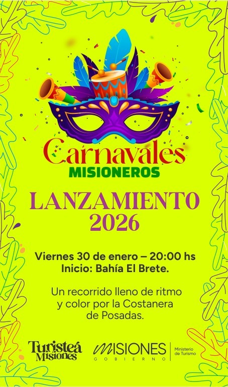 Este viernes, la Costanera de Posadas será escenario de la presentación oficial de los Carnavales Misioneros 2026, a través de una propuesta itinerante y participativa que invita a residentes y turistas a disfrutar el espíritu del carnaval en pleno paseo costero.