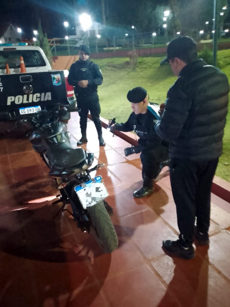El procedimiento se concretó anoche, cerca de las 23:30, en el marco de un Operativo de Prevención de Delitos y Faltas Contravencionales. Minutos antes, una motocicleta de similares características había evadido un control vehicular sobre la avenida 25 de Mayo y se dio a la fuga.
