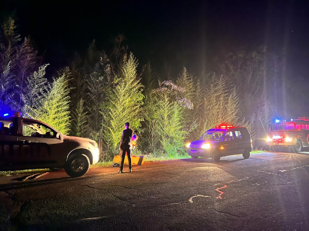 El siniestro ocurrió este domingo a las 03:21, sobre la Ruta Nacional 12 a la altura del aserradero Induba, donde por causas que se investigan una motocicleta Zanella 110 cc que circulaba en sentido Garupá–Candelaria, conducida por un joven de 18 años y acompañado por una adolescente de 17, habría embestido a un peatón de 40 años que caminaba por la zona.