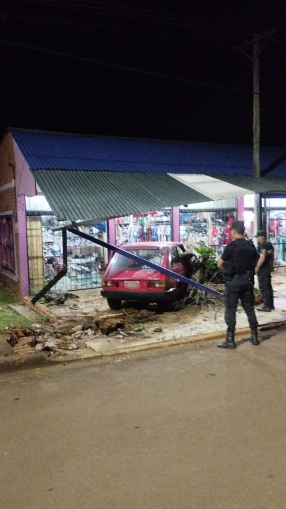 El siniestro ocurrió el sábado alrededor de las 21:50, cuando un Chevrolet Cruze conducido por Yésica M. (39), quien resultó ilesa, impactó con un Fiat Vivace al mando de Jorge Marcelo D. G. (48). Tras el choque, el Fiat perdió el control y terminó chocando de lleno contra la fachada de una tienda comercial, provocando daños significativos en el comercio y dejando esparcidos restos del vehículo sobre la vereda.